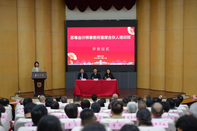 10月20日至24日,江苏省注册会计师协会和广东省注册会计师协会联合主办的“苏粤会计师事务所首席合伙人(主任会计师)培训班”在南京大学成功举办。两省120余位会计师事务所首席合伙人(主任会计师)及管理合伙人齐聚百年学府,围绕行业前沿动态展开深度学习研讨,共商协同发展良策。江苏省注协会长李载林、广东省注协副会长兼秘书长穆慧姝、南京大学商学院经济学院副院长葛扬出席开班仪式并致辞。