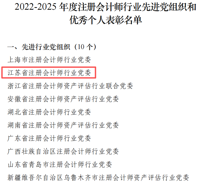 近日,中国注册会计师行业党委印发《关于表彰2022-2025年度注册会计师行业先进党组织和优秀个人的决定》,省注册会计师行业党委等13家党组织和26名个人获得表彰。