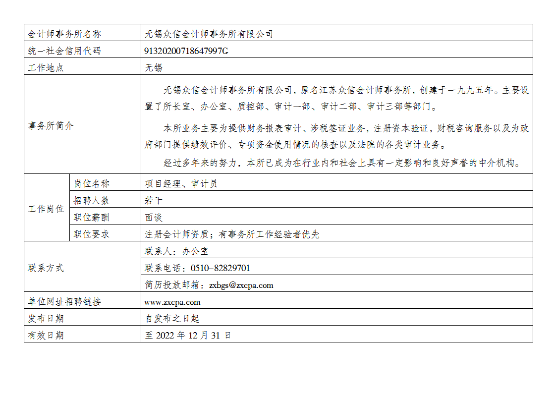 江苏省注册会计师协会网站中的“招聘英才”板块,仅是为各会计师事务所提供的职位发布信息平台,各会计师事务所自行上报招聘信息并保证其真实性、合法性;各会计师事务所和应聘者的招聘、应聘等活动由各方自行负责,本协会网站并不对招聘信息内容的真实性、合法性负责。特此声明。